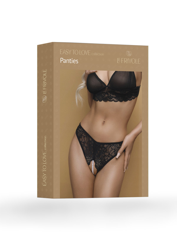 Трусики открытые с жемчужной нитью "Le Frivole" черные, XXL/XXXL