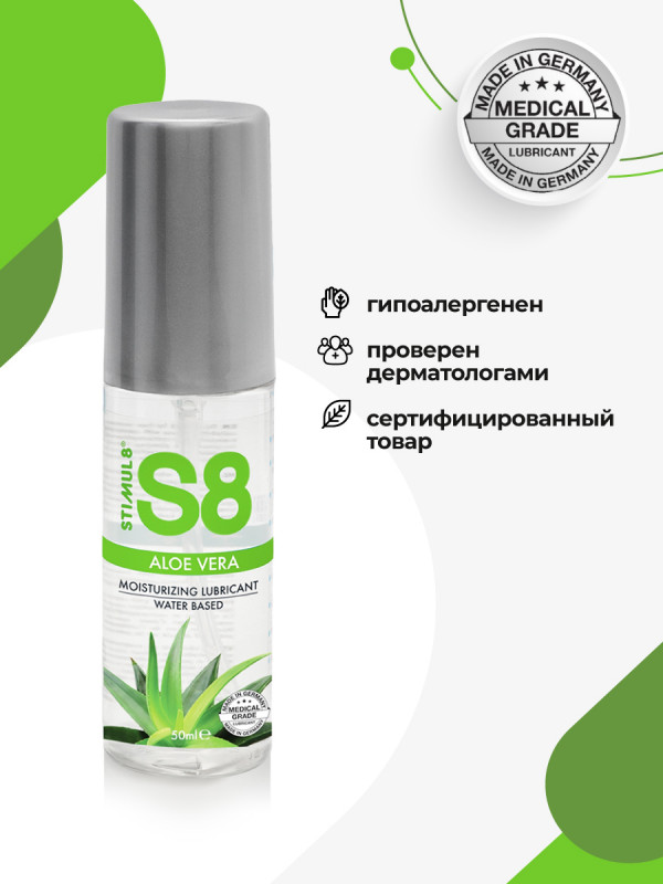 Гипоаллергенный гель с алоэ вера на водной основе без глицерина с невероятно шелковистым длительным скольжением "Stimul 8 Aloe Vera" - идеальное решение для людей с сухой чувствительной кожей и склонных к аллергии!